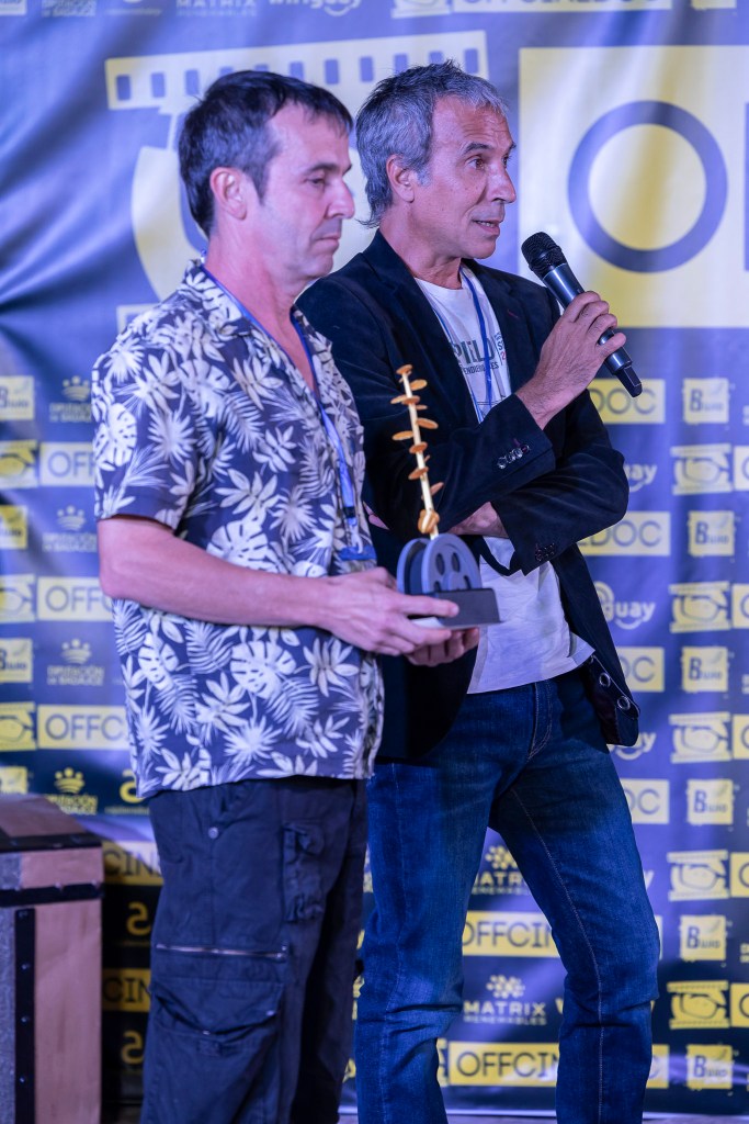 José Manuel Rodríguez, en representación de los directores de «La piel donde me hallo», subió al escenario para recibir el premio Offcinedoc al mejor cortometraje documental – hizo entrega del mismo, Isabel Garduño, alcaldesa de Segura de León-. Mientras que Mariano Agudo y Daniel Lagares celebraron su victoria con «Wändari», galardonado como el mejor largometraje documental. Aunque los premios Encina (mejor documental de igualdad y género) y Castillo (mejor documental de investigación y análisis), otorgados a «Kalabukú» y «Quesada. La verdad del silencio» respectivamente, no pudieron ser recogidos en persona debido a compromisos laborales de sus directores, su reconocimiento resonó en el corazón de todos los asistentes. También se hizo entrega del premio al ganador del concurso de carteles de esta edición, que recayó en manos de Manuel Castuera García, reconocido artista multidisciplinar especializado en la poesía visual.