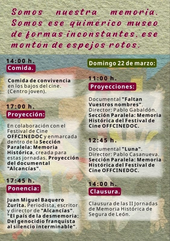 A continuación, puedes consultar la programación completa de las II Jornadas de Memoria Histórica de Segura de León: