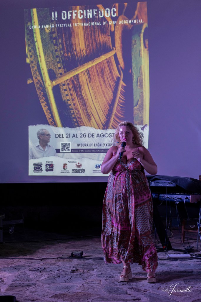 La segunda edición del Oyola Fabián Festival Internacional de Cine Documental debía culminar con una Gala acorde a la calidad de los trabajos presentados, proyectados y galardonados. Una noche en la que además del público, que este año ha doblado y triplicado el aforo en cada una de las jornadas de proyección de documentales, nos acompañaban los directores o representantes de los diferentes documentales premiados, sus productores, miembros de los diferentes equipos, y sus acompañantes. Y en la que como guinda del pastel, teníamos la actuación de Alter Ecco con su espectacular show «Quimera». Todo estaba planificado salvo el cambio drástico de temperaturas que sufrimos esa noche, y que marcó el desarrollo de la Gala, un aspecto ante el que poco podíamos hacer. |